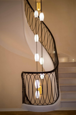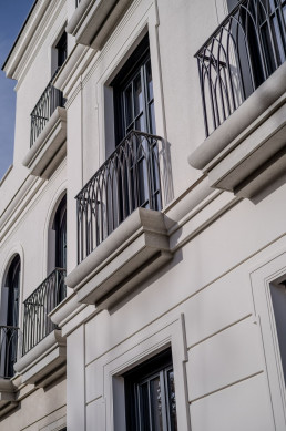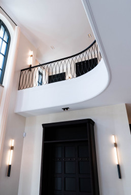 Besonders wichtig war mir die intensive Begleitung der Bauherren bei sämtlichen Material- und Ausstattungsentscheidungen – vom Naturstein über französische Balkone bis hin zur Gestaltung der Eingangssituation und der innenliegenden Portale. Die technische Detailentwicklung entstand in engem Austausch mit den beteiligten Gewerken, insbesondere Elektro, TGA, Schreinerei und Naturstein um gestalterische Präzision und funktionale Qualität zu vereinen.
