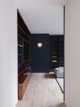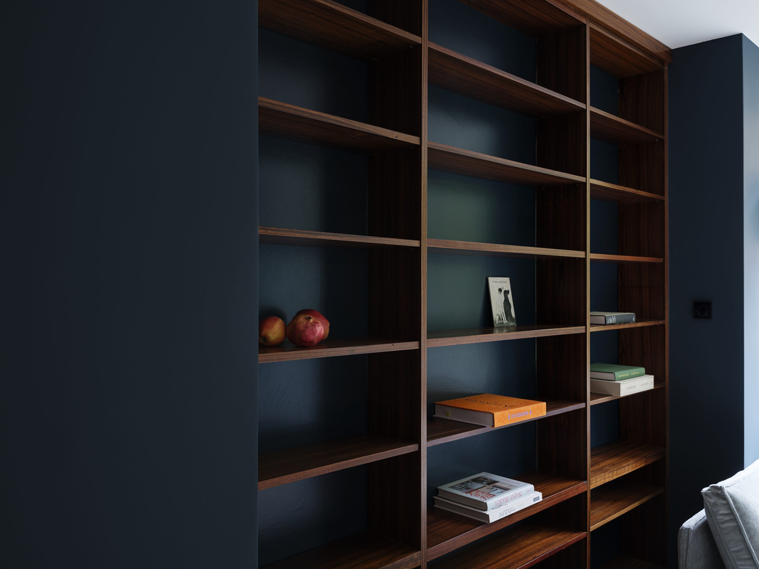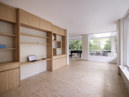 Dieses charmante Architektenhaus aus den 1980er-Jahren wurde mit viel Feingefühl für den ursprünglichen Bestand modernisiert. Ein besonderes Highlight ist die Bibliothek mit dem originalen Palisander-Ausbau. Hier wurde in enger Abstimmung mit dem Bauherren ein edles Blau als neue Akzentfarbe gewählt, das dem Raum ein stilvolles und zugleich gemütliches Ambiente verleiht.